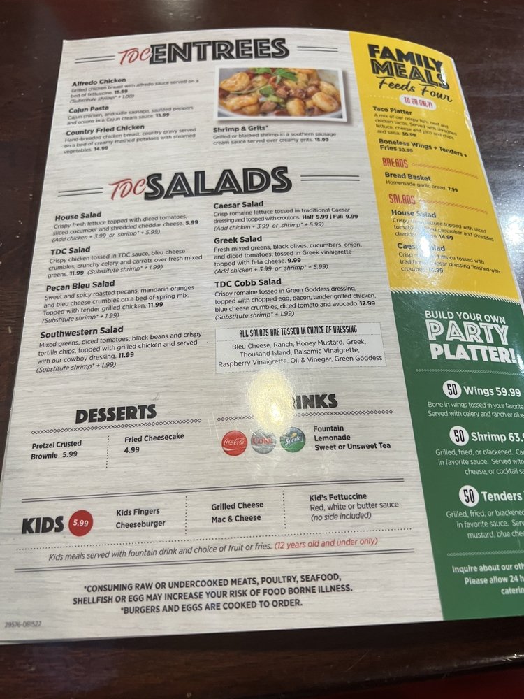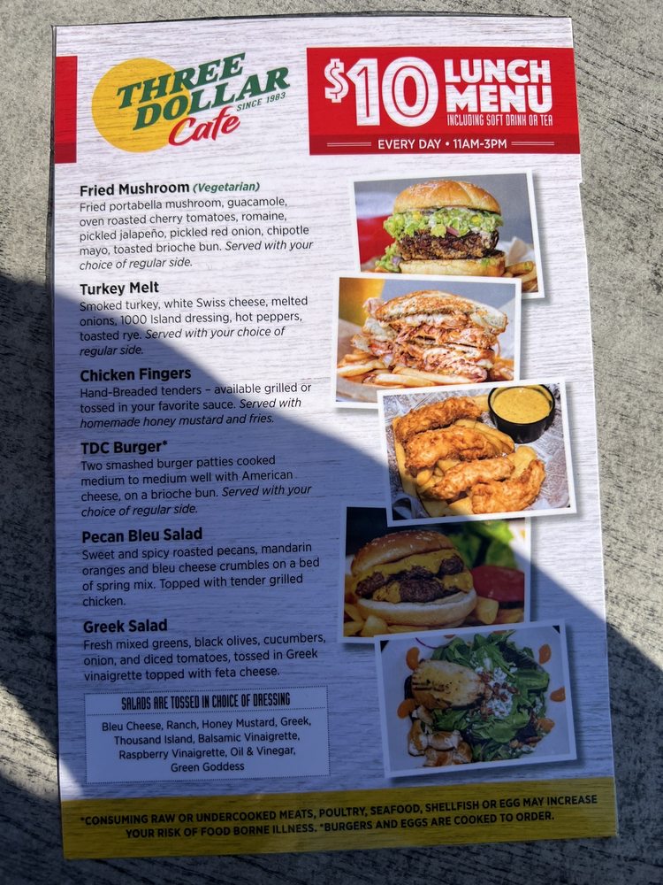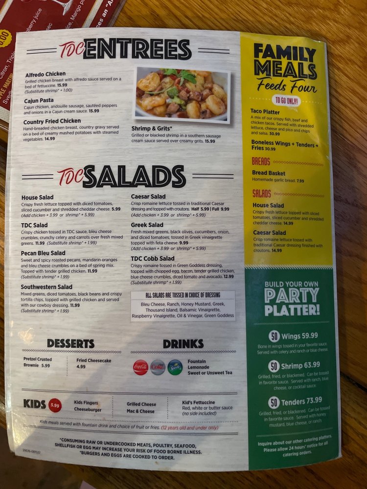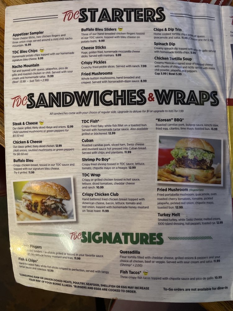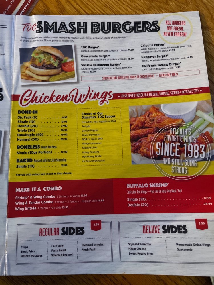 Introducing the menu at Three Dollar Cafe, a sports bar in McDonough, GA, offering American cuisine with a focus on chicken wings. The restaurant boasts a variety of starters like the Appetizer Sampler and TDC Bleu Chips, as well as unique sandwiches and wraps such as the Buffalo Bleu and TDC Fish. Customers rave about the flavorful dishes, with one reviewer praising the crispy and delicious TDC fish sandwich. The restaurant's signature chicken fingers and fish & chips are also popular choices among diners. With a welcoming atmosphere and attentive service, Three Dollar Cafe is a must-visit for those craving wings and classic American fare. Don't miss out on their $10 lunch menu specials before 2pm for a great value dining experience.